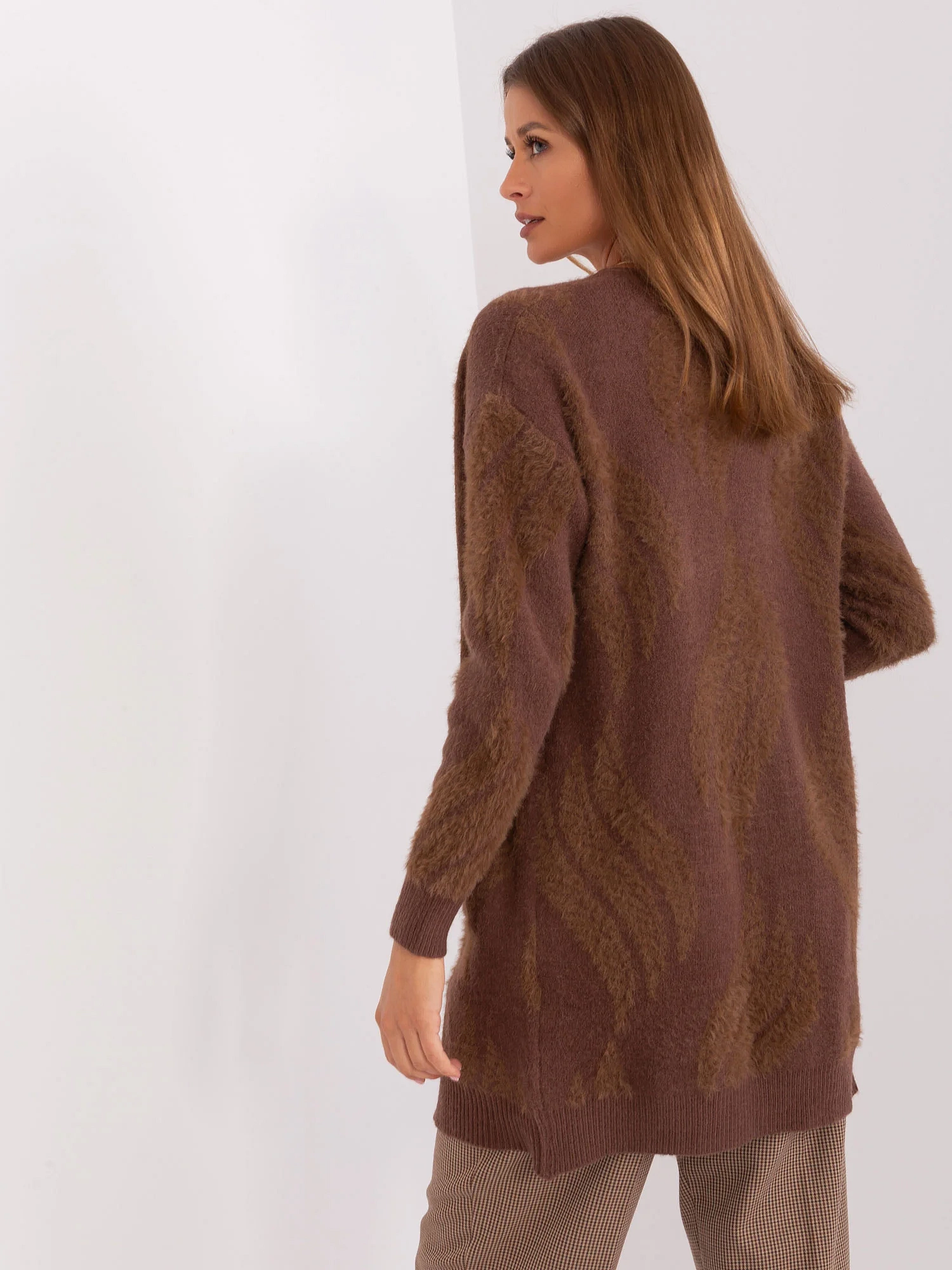 Hnědý dámský svetr s kapsami