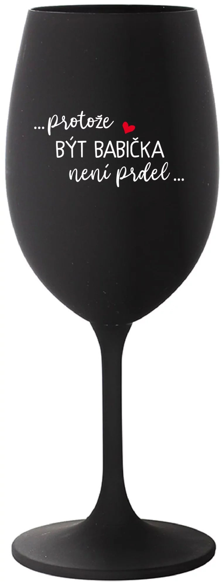 Vinná černá sklenice s originálním motivem ...PROTOŽE BÝT BABIČKA NENÍ PRDEL.. je krásným a osobitým dárkem, které ale využijete i Vy sami třeba ve chvílích, kdy si budete chtít zpříjemnit náročný den. Tyto originální vinné sklenice jsou totiž nejen pro výjimečné události, ale i pro běžné večery, které si chcete zpříjemnit sklenkou dobrého vína. Jistě proto potěší každého milovníka vína, i toho, kdo si umí svůj život vychutnat plnými doušky.