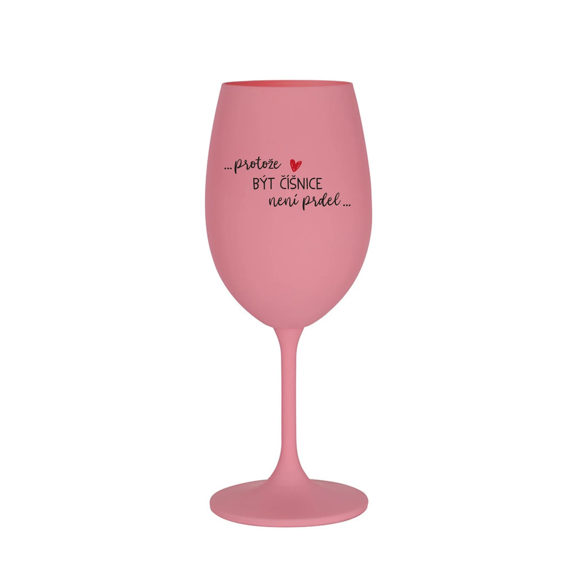 Vinná růžová sklenice s originálním motivem PROTOŽE BÝT ČÍŠNICE NENÍ PRDEL je krásným a osobitým dárkem, které ale využijete i Vy sami třeba ve chvílích, kdy si budete chtít zpříjemnit náročný den. Tyto originální vinné sklenice jsou totiž nejen pro výjimečné události, ale i pro běžné večery, které si chcete zpříjemnit sklenkou dobrého vína. Jistě proto potěší každého milovníka vína, i toho, kdo si umí svůj život vychutnat plnými doušky. Materiál sklo. Vyrobené s láskou v ČR