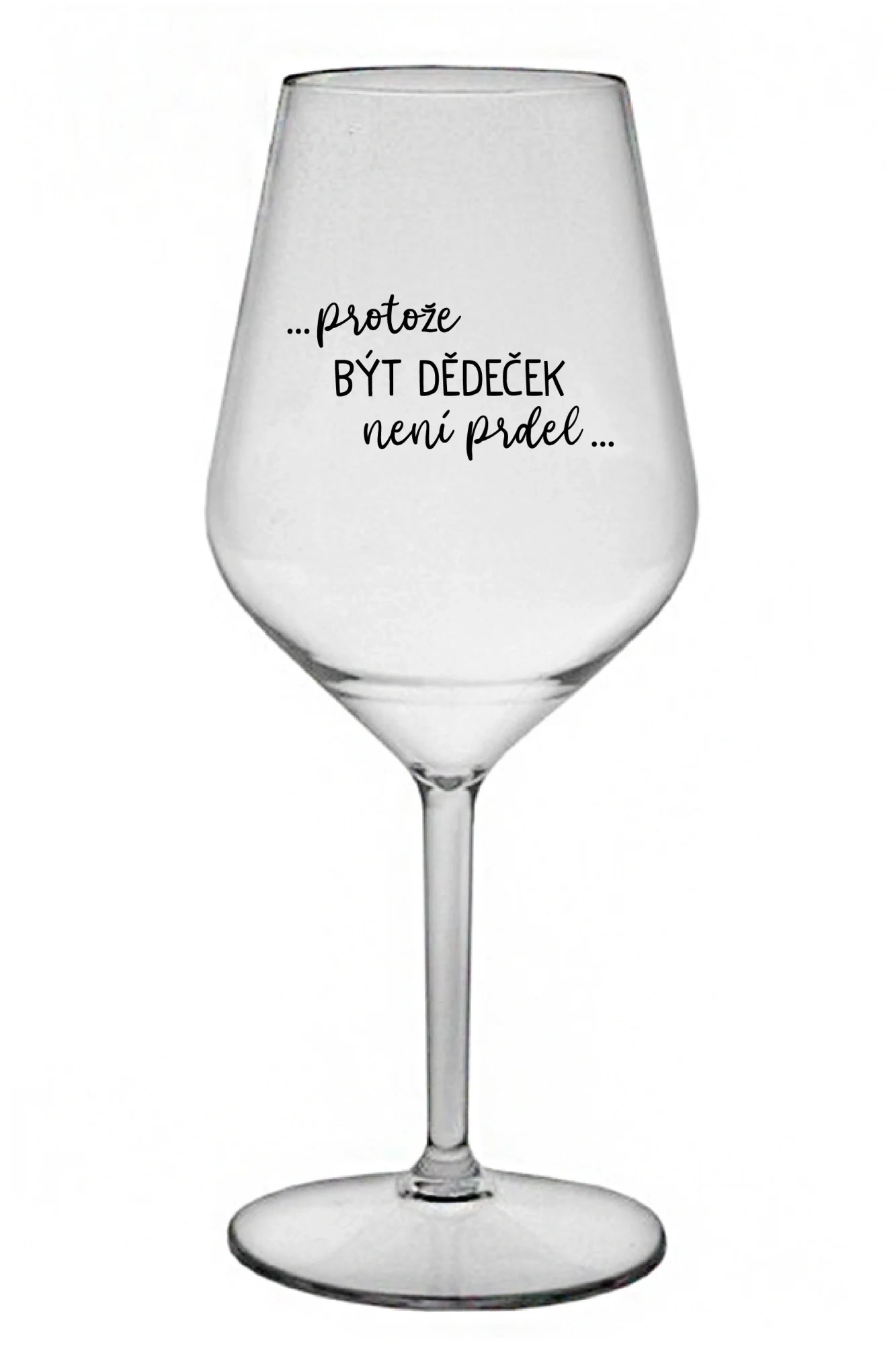Nerozbitná čirá vinná sklenice s motivem ...PROTOŽE BÝT DĚDEČEK NENÍ PRDEL.. je skvělá na zahradu, pláž, výlet, piknik a parádu udělá i při kempování. Jelikož je vyrobená z kvalitního polykarbonátu je de facto nerozbitná. Je to luxusní kousek, s nímž si víno můžete vychutnat prostě kdekoliv. Mají ergonomický tvar, který příjemně padne do ruky a protože je lehká, usnadňuje to její přenášení. Je snadno skladovatelná a lehce se čistí. Díky svému designu si s ní můžete vychutnat doopravdy kdekoliv bezproblémové pití výborného vína.