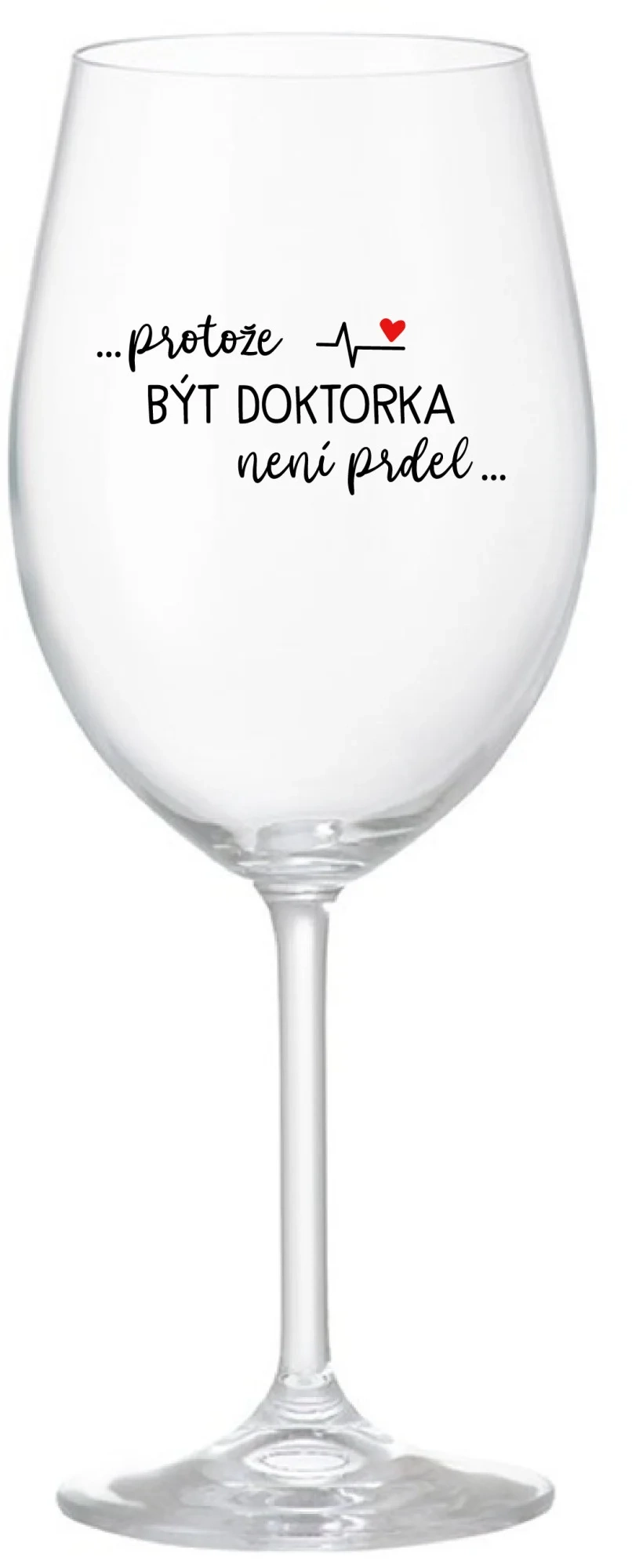 Vinná čirá sklenice s originálním motivem ...PROTOŽE BÝT DOKTORKA NENÍ PRDEL... je krásným a osobitým dárkem, které ale využijete i Vy sami třeba ve chvílích, kdy si budete chtít zpříjemnit náročný den. Tyto originální vinné sklenice jsou totiž nejen pro výjimečné události, ale i pro běžné večery, které si chcete zpříjemnit sklenkou dobrého vína. Jistě proto potěší každého milovníka vína, i toho, kdo si umí svůj život vychutnat plnými doušky.