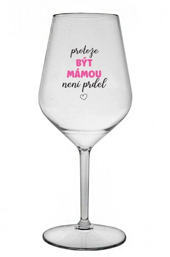 Nerozbitná čirá vinná sklenice s motivem PROTOŽE BÝT MÁMOU NENÍ PRDEL je skvělá na zahradu, pláž, výlet, piknik a parádu udělá i při kempování. Jelikož je vyrobená z kvalitního polykarbonátu je de facto nerozbitná. Je to luxusní kousek, s nímž si víno můžete vychutnat prostě kdekoliv. Mají ergonomický tvar, který příjemně padne do ruky a protože je lehká, usnadňuje to její přenášení. Je snadno skladovatelná a lehce se čistí. Díky svému designu si s ní můžete vychutnat doopravdy kdekoliv bezproblémové pití výborného vína.
