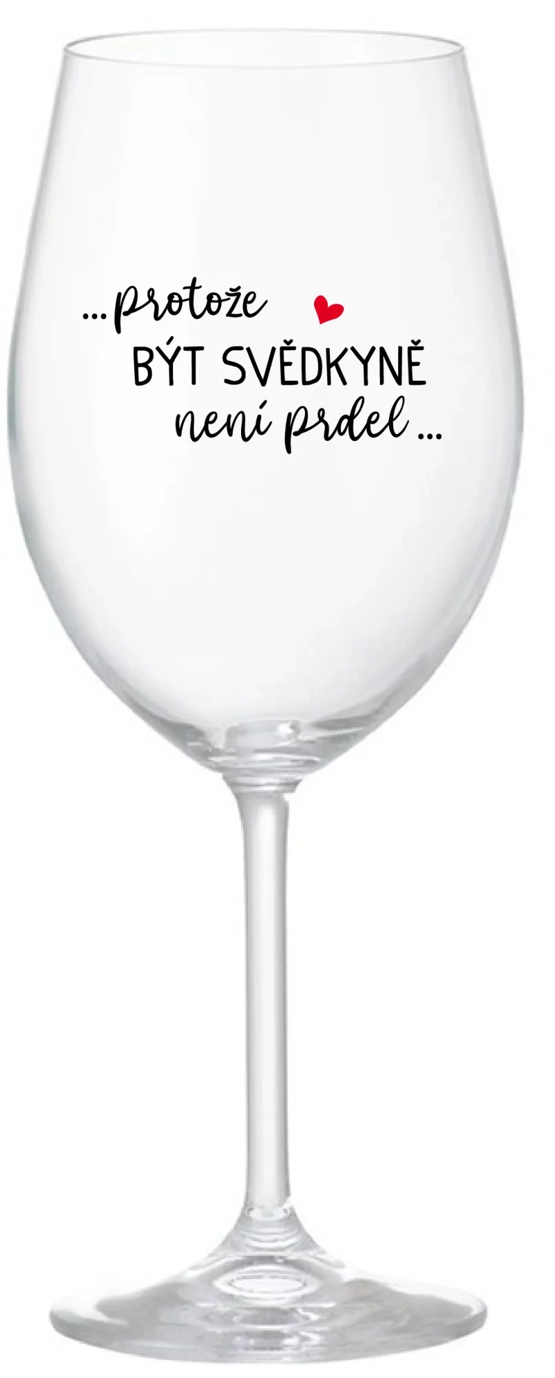 Vinná čirá sklenice s originálním motivem ...PROTOŽE BÝT SVĚDKYNĚ NENÍ PRDEL... je krásným a osobitým dárkem, které ale využijete i Vy sami třeba ve chvílích, kdy si budete chtít zpříjemnit náročný den. Tyto originální vinné sklenice jsou totiž nejen pro výjimečné události, ale i pro běžné večery, které si chcete zpříjemnit sklenkou dobrého vína. Jistě proto potěší každého milovníka vína, i toho, kdo si umí svůj život vychutnat plnými doušky.