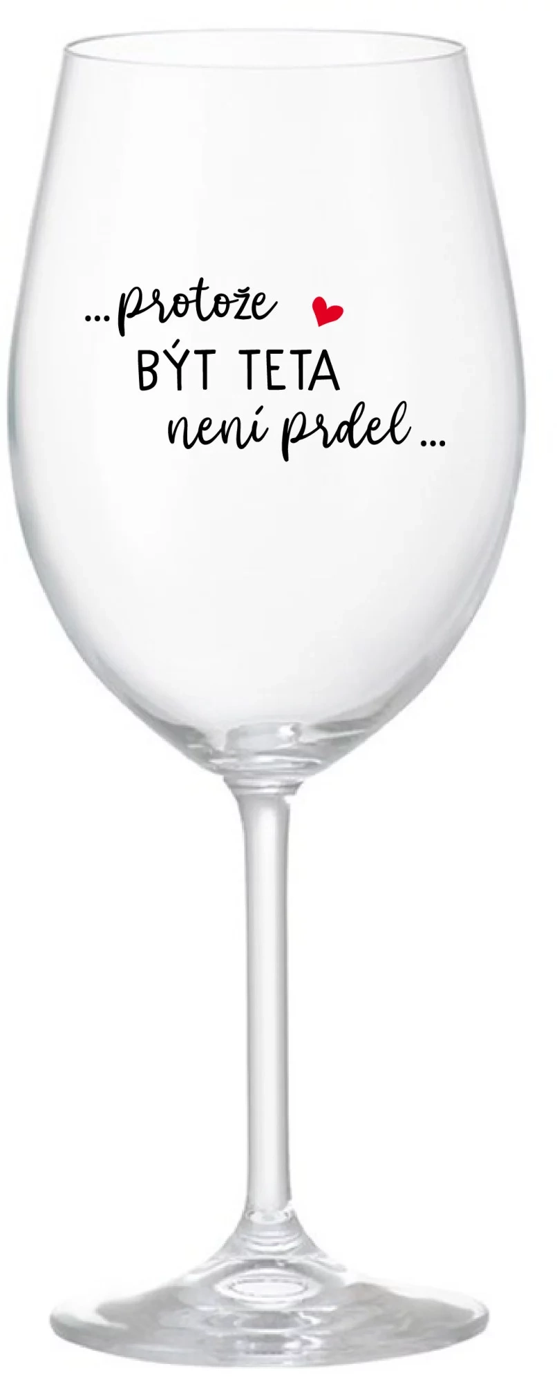 Vinná čirá sklenice s originálním motivem ...PROTOŽE BÝT TETA NENÍ PRDEL... je krásným a osobitým dárkem, které ale využijete i Vy sami třeba ve chvílích, kdy si budete chtít zpříjemnit náročný den. Tyto originální vinné sklenice jsou totiž nejen pro výjimečné události, ale i pro běžné večery, které si chcete zpříjemnit sklenkou dobrého vína. Jistě proto potěší každého milovníka vína, i toho, kdo si umí svůj život vychutnat plnými doušky.