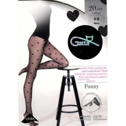 Dámské punčochové kalhoty se vzorem husté síťoviny a se srdíčky.Punčocháče jsou vyrobené z lycrové oplétané příze. Model je matný, průhledný a nemá vyznačený sed s malým klínem.Složení: 92 % polyamid, 8 % elastan.