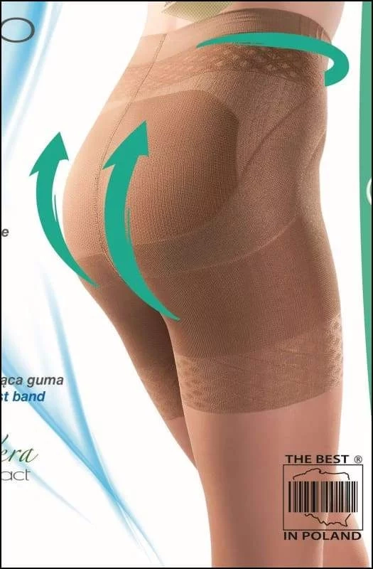 Zeštihlující punčochy s ojedinělým sedem stahujícím břicho a boky a tvarujícím pozadí. Punčochy obsahují extrakt z aloe, který zvlhčuje pokožku a zvětšuje pocit pohodlí. Výhody: okamžité tvarování postavy (obzvláště beder a pozadí), guma nezpůsobující otlaky. Tloušťka 40DEN. Složení: 85% polyamid, 15% elastén.