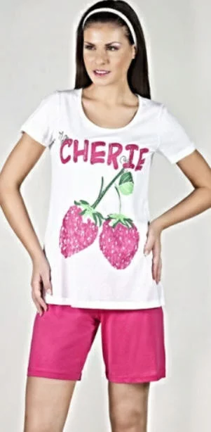 Pyžamo 9310 - Vamp. Dámské pyžamo s krátkým rukávem a kraťasy.Přední díl zdobený dvěma jahodami,nápisem a štrasem.