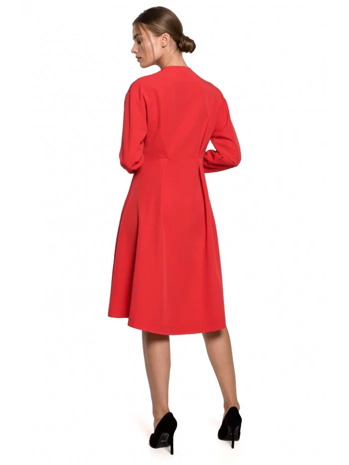 Velmi ženské a elegantní šaty ve fitted střihu s ozdobnými záhyby v pase a tříčtvrtečními rukávy. PODROBNOSTI O PRODUKTU: šaty z tkané látky s límcem zavinovací design s detailem kravaty na boku vnitřní skryté zapínání na knoflíky asymetrické zapínání vpředu skrytá šňůrka na zavazování na jedné straně a zapínání vpředu pod kolena délka bez podšívky naše modelka měří 174 cm a nosí velikost S