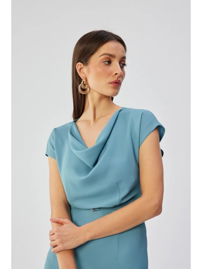 95% polyester 5% elastan DETAILY PRODUKTU: tkaná látka šikmý střih šaty kapucí výstřih krátké netopýří rukávy midi délka s asymetrickým spodním lemem bez podšívky skrytý boční zip pásek se sponou naše modelka je 176 cm vysoká a nosí velikost S navrženo a vyrobeno v Polsku