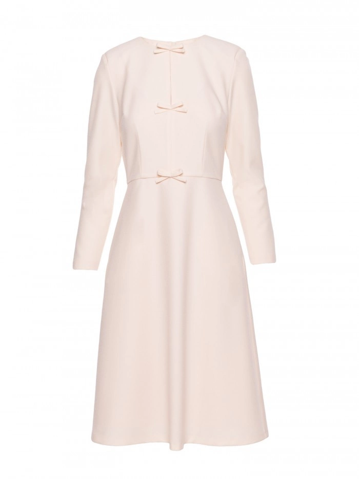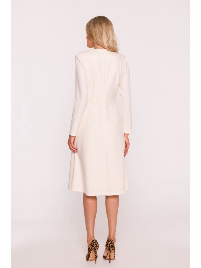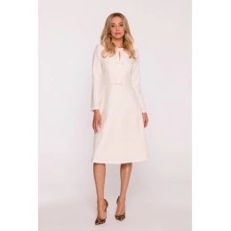HLAVNÍ LÁTKA 97% polyester 3% elastan PODŠÍVKA 95% polyester 5% elastan Tkanina: hladká tkanina PODROBNOSTI O VÝROBKU Výstřih: kulatý u krku s rozparkem vpředu Rukávy: dlouhé Kapsy: žádné Zapínání: skrytý zip na zádech Podšívka: plně podšitá Model: S414 Navrženo a vyrobeno v Polsku Modelka měří 174 cm a nosí velikost S STYL A STŘIH Styl: trapézové šaty s ozdobnými mašlemi vpředu Tvar: uvolněná áčková linie, volnější v oblasti boků Délka: pod kolena