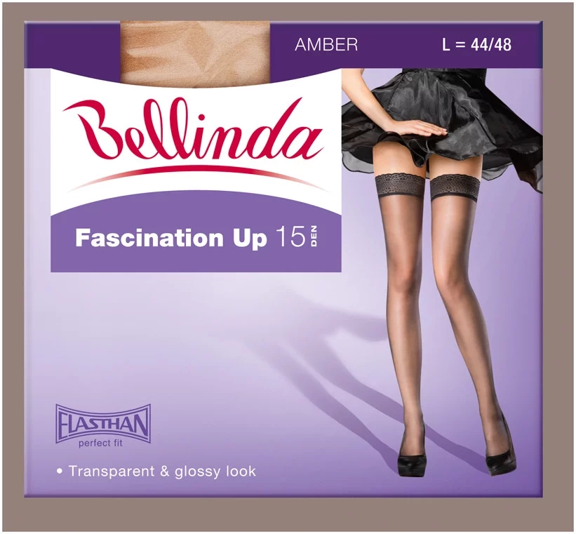 Transparentní lesklé samodržící punčochy o síle 15 DEN, které skvěle padnou a mají atraktivní lem. Výborně drží díky silikonovému pásu na krajce.
