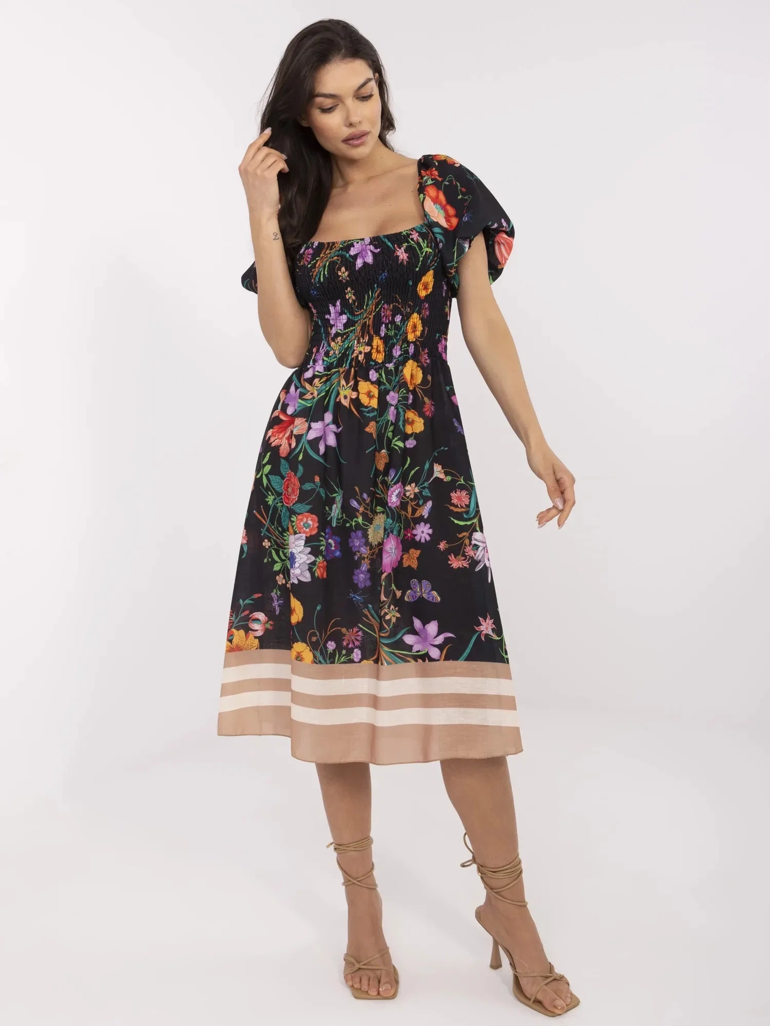 Modelka má na sobě jednu velikost. míry modelky: výška 173 cm, prsa 89 cm, pas 65 cm, boky 91 cm.