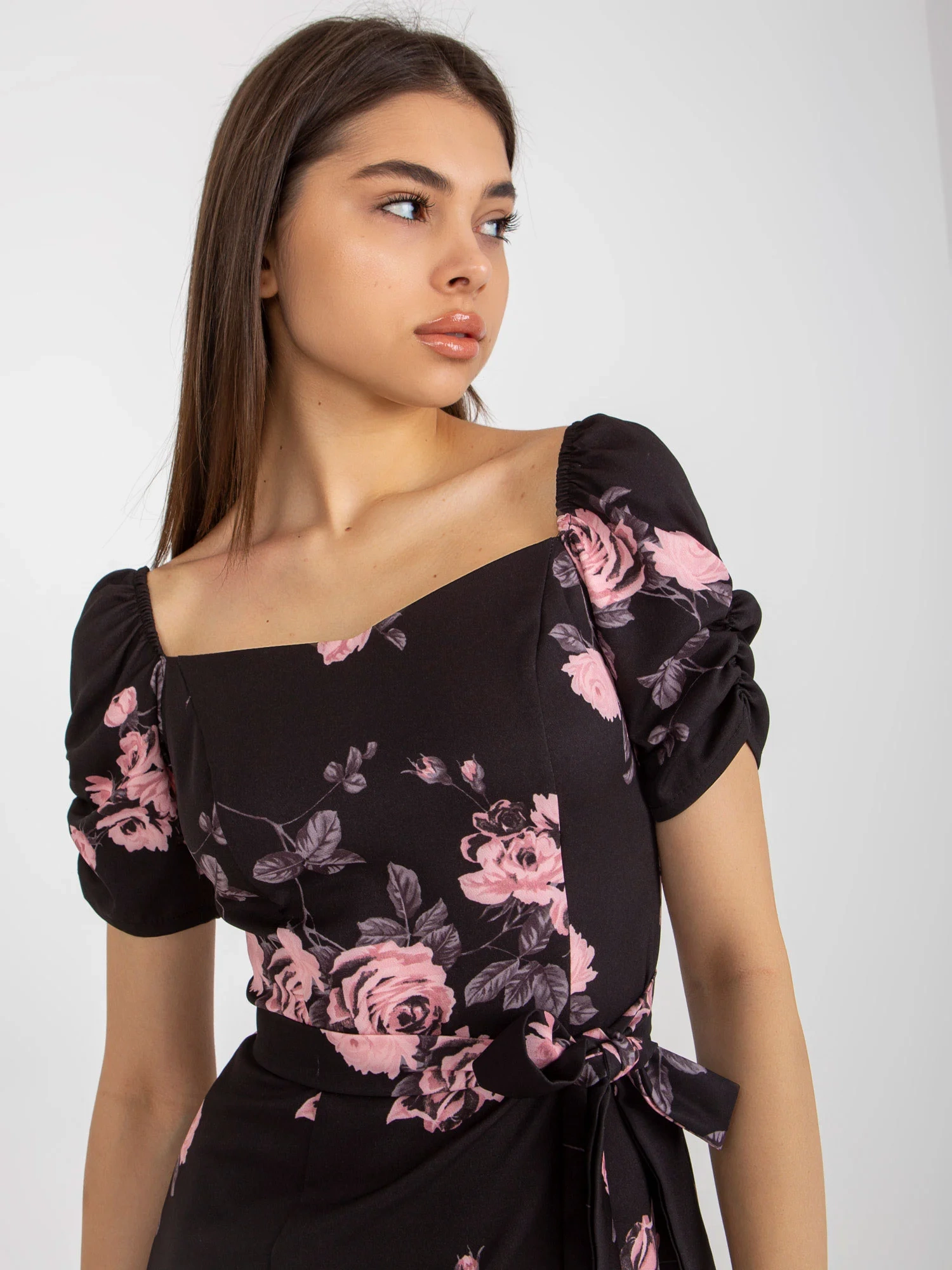 Modelka má na sobě velikost 36. Rozměry modelky: výška 172 cm, poprsí 88 cm, pas 61 cm, boky 92 cm.