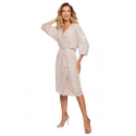 Zazáříte jako diamant! V našich flitrových šatech ve střední délce budete zářit nocí. Má úžasný véčkový výstřih, dlouhé rukávy a zavinovací design s páskem na zavázání v pase.