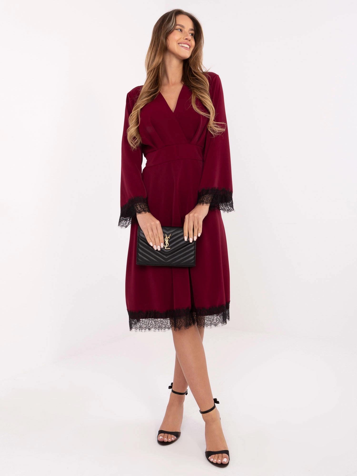 rukávy i spodní lem jsou doplněny jemnou černou krajkou