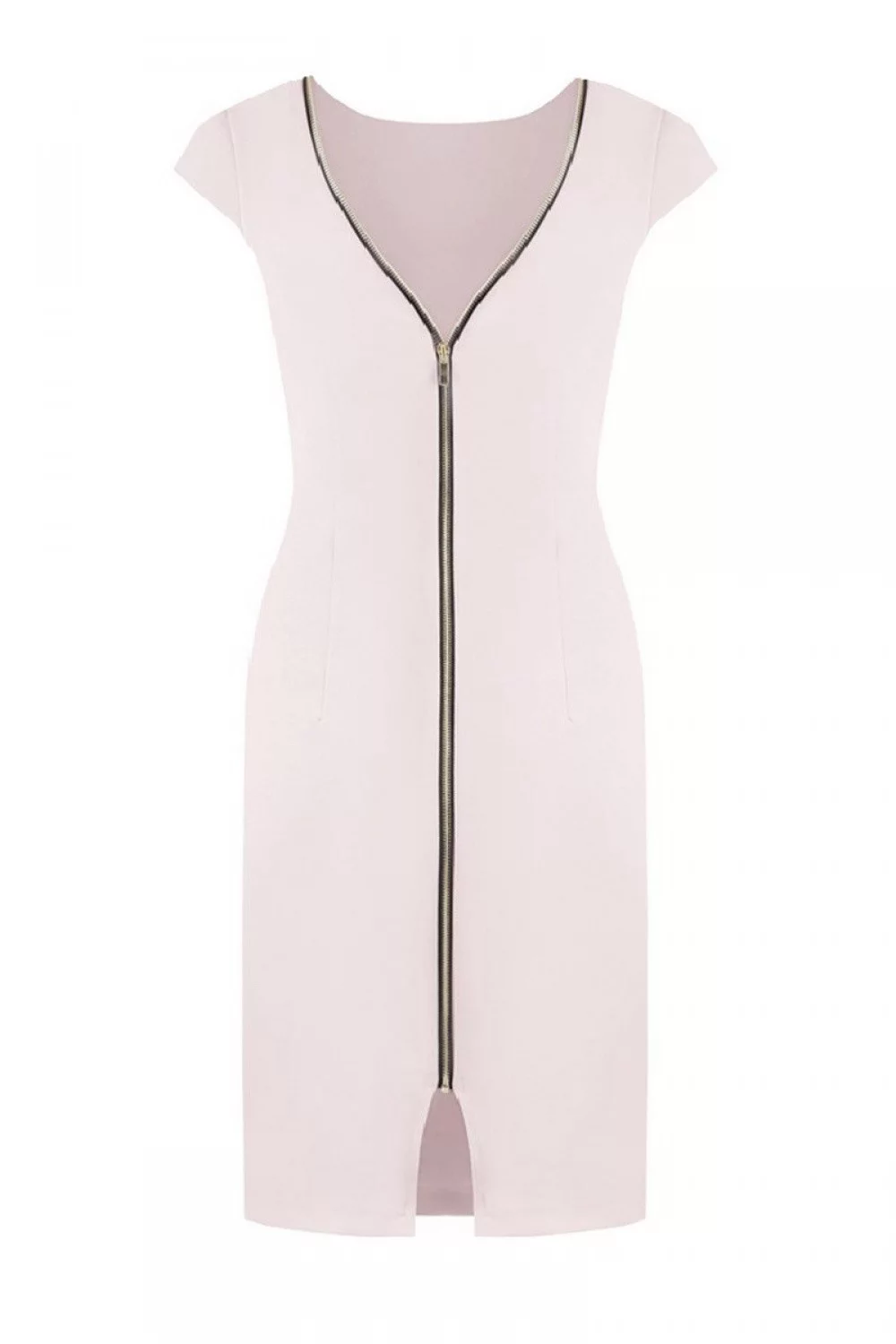 Šaty z měkkého úpletu. Jednoduché a klasické, ale s drápkem. Elegantní zip ve zlaté barvě na zadní straně dělá model jedinečným. Jemné záševky maskují nedokonalosti postavy a zároveň ji zdůrazňují.