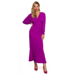Okouzlující a jedinečné šaty pro zvláštní příležitosti. Hluboký výstřih a objemné rukávy zakončené manžetami s krytými knoflíky. Maxi sukně s jemným rybím copem a poutavým rozparkem na zádech vás potěší při pohybu. Šaty jsou bez podšívky a zapínají se na krytý zip.