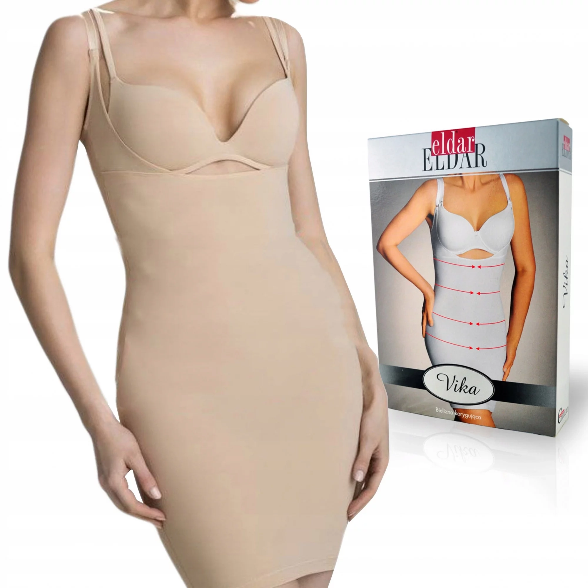 Košilka se stahovacím efektem v celé oblasti bříška. Košilka je v oblasti prsou vykrojená, zadní část je vyššího střihu. Pozor, součástí není podprsenka. Je zakončená na elastická ramínka s možností nastavení délky. Tato stahovací košilka dokáže dokonale opticky zpevnit a vymodelovat postavu. Velkou výhodou je, že se košilka oproti stahovacím kalhotkám v oblasti pasu nesesouvá, ale pevně drží na místě. Je mimořádně vhodná pro každodenní nošení. Košilky Eldar (+ triko Georgia) Rozměr S (34-36) M (38-40) L (42-44) XL (46-48) XXL (50-52) 3XL (54-56) Obvod přes prsa 84-88 92-96 100-104 108-112 116-120 124-128 Doporučená údržba produktů značky Eldar: Praní maximálně do 30°C. Výrobek se nesmí bělit. Nežehlit. Výrobek se nesmí chemicky čistit. Sušit ve svislé poloze. Nesušit v bubnové sušičce.