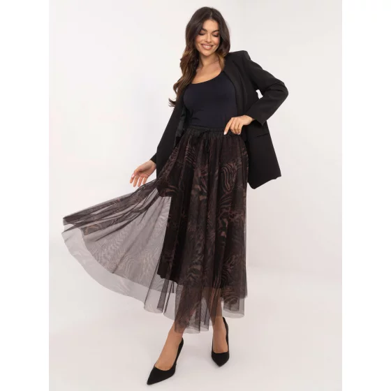 Dámská delší sukně, s gumou v pase a zavazováním na bocích. Sukně je složená s podšívky a tylové části.