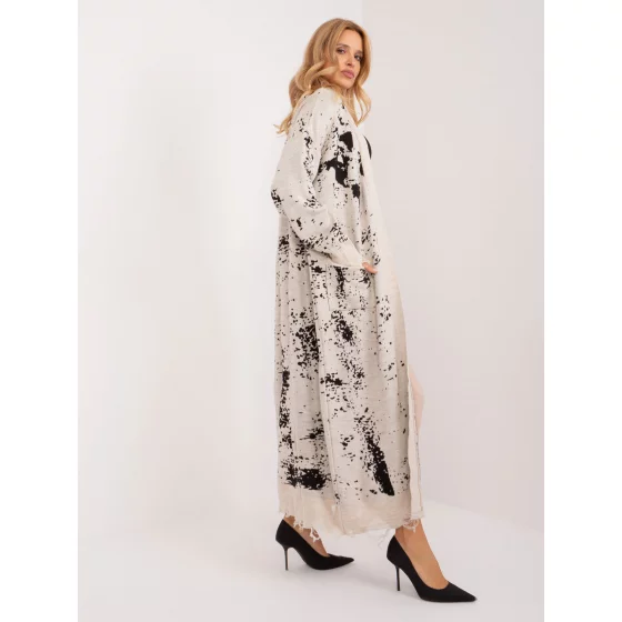 Rozměry svetru v jedné velikosti měřené na plocho: šířka v podpaží - 66 cm, délka rukávu - 63 cm, celková délka - 125 cm