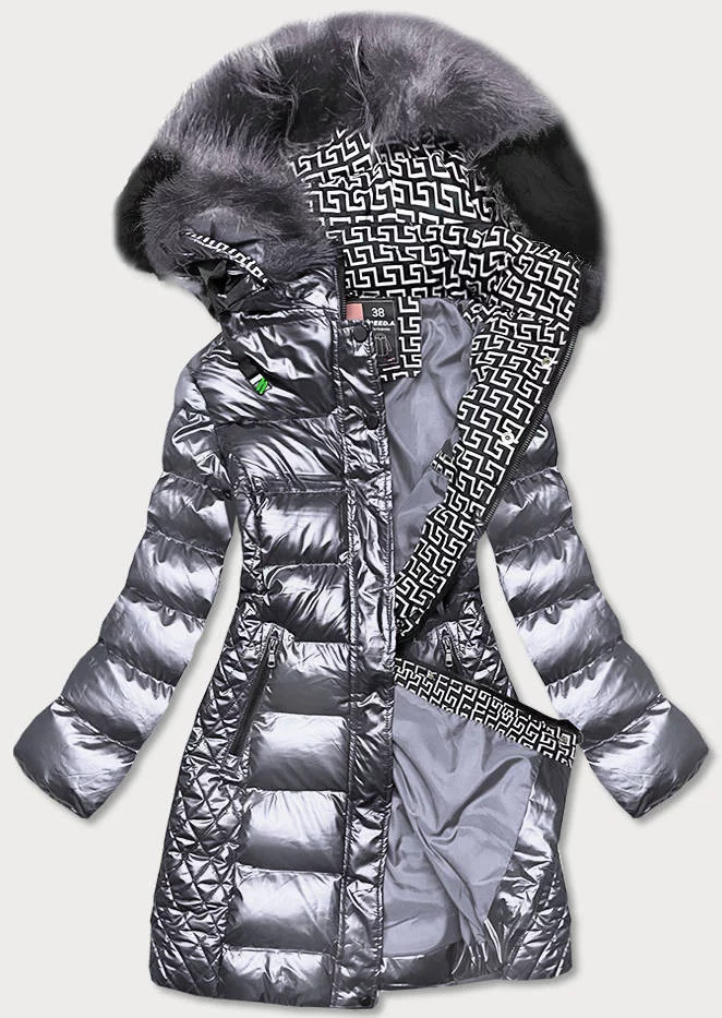 Prošívaná metalická bunda s kapucí, kterou je možné odepnout