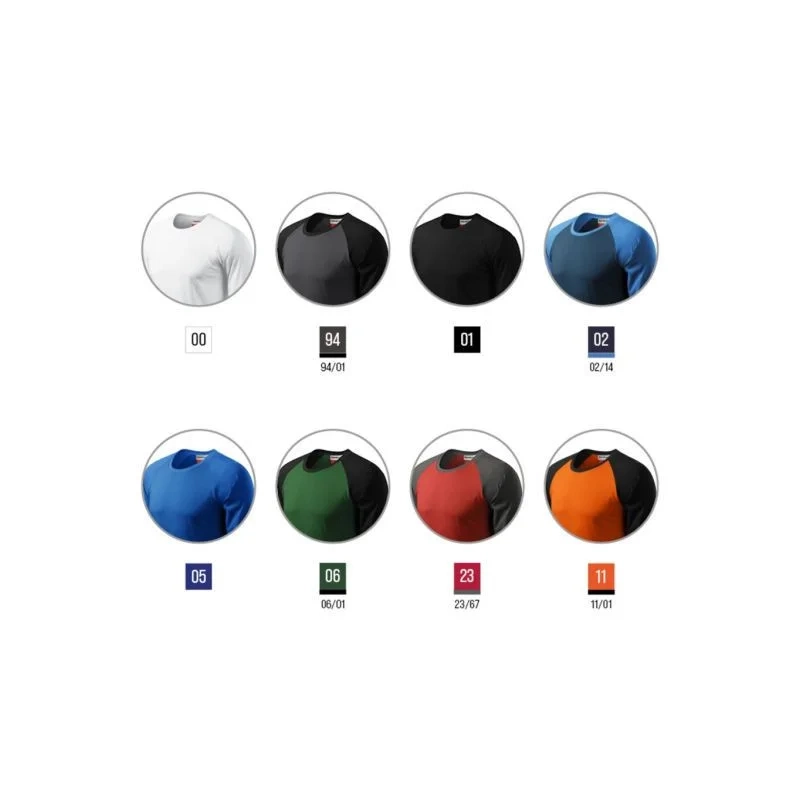 Vlastnosti: Materiál: 100 % bavlna, jednoduchý žerzej střih s bočními švy, úzký žebrový úplet 1