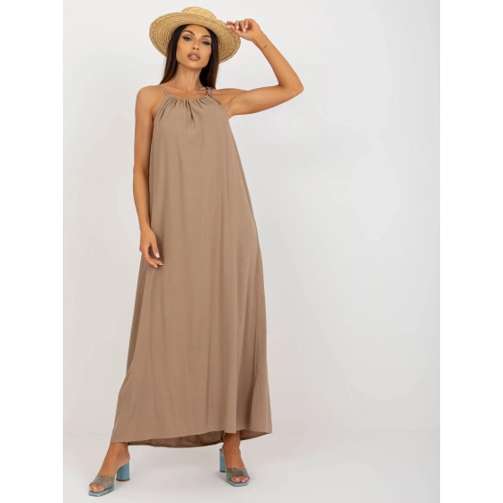 Tmavě béžové letní oversize šaty s plátnem OCH BELLA .