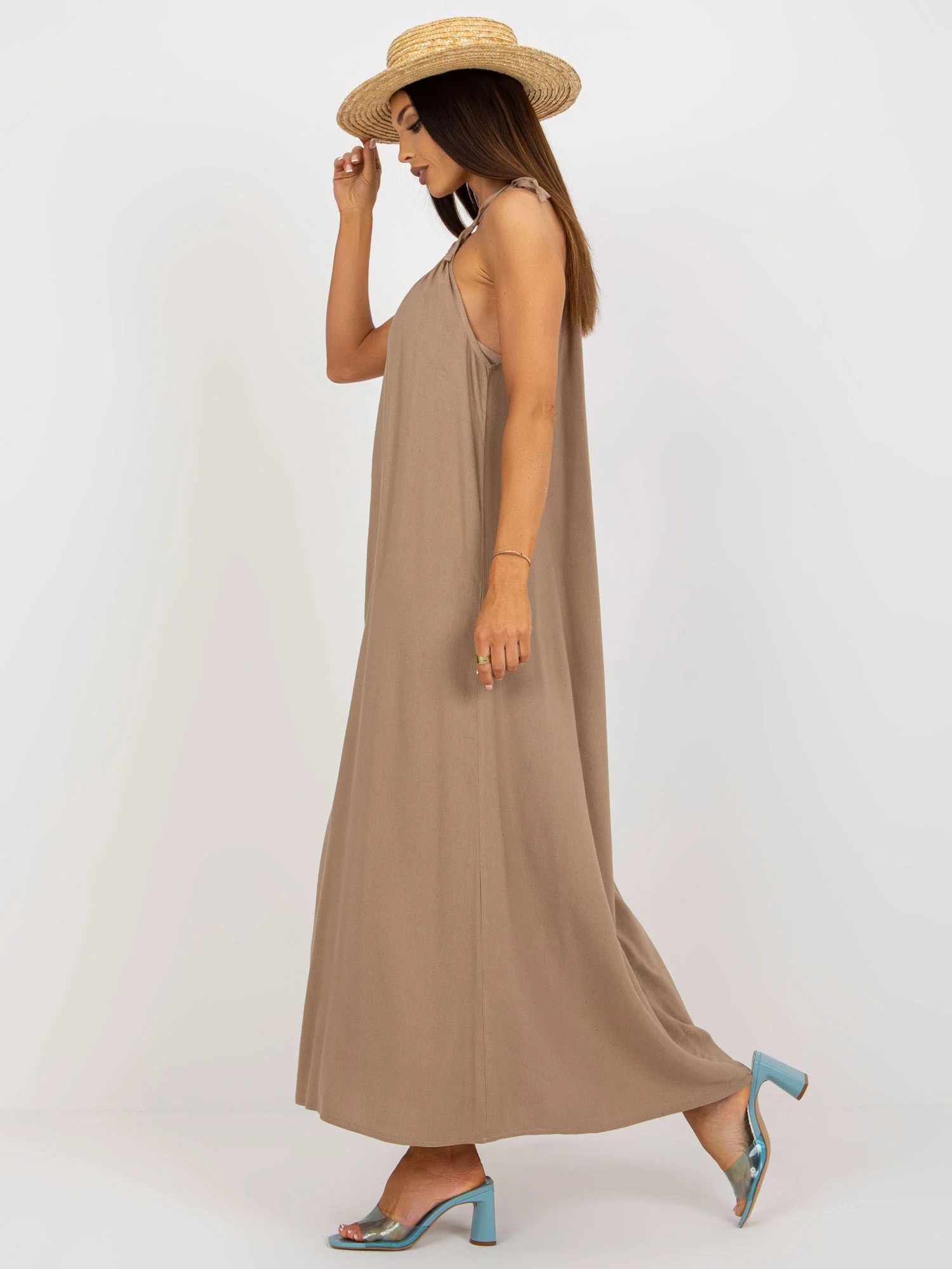 Tmavě béžové letní oversize šaty s plátnem OCH BELLA .