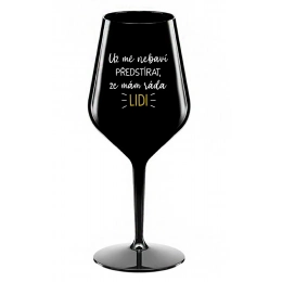 Nerozbitná černá vinná sklenice s motivem UŽ MĚ NEBAVÍ PŘEDSTÍRAT, ŽE MÁM RÁDA LIDI je skvělá na zahradu, pláž, výlet, piknik a parádu udělá i při kempování. Jelikož je vyrobená z kvalitního polykarbonátu je de facto nerozbitná. Je to luxusní kousek, s nímž si víno můžete vychutnat prostě kdekoliv. Mají ergonomický tvar, který příjemně padne do ruky a protože je lehká, usnadňuje to její přenášení. Je snadno skladovatelná a lehce se čistí. Díky svému designu si s ní můžete vychutnat doopravdy kdekoliv bezproblémové pití výborného vína.