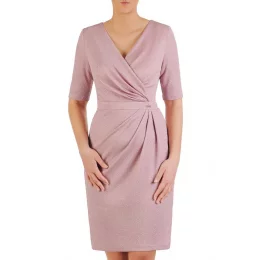 Přiléhavé šaty s řasením vpředu. Překrývající se výstřih, v pase přestřižený. Šaty mají skrytý zip.