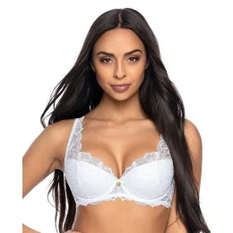 Podprsenka je vyrobená z krajky s květinovým motivem. Vnitřní strana košíčků je pokrytá bavlnou. Boky modelu jsou krajkové. Ozdobná ramínka je možné nastavit, ale nelze je odepnout. Model ideálně nadnáší poprsí a poskytuje mu oporu. Podprsenka má střih a konstrukci typu Carmela 053/22.