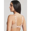 Dámská vyztužená podprsenka s kosticemi, posouvací ramínka, vzadu na zapínání na dva háčky.