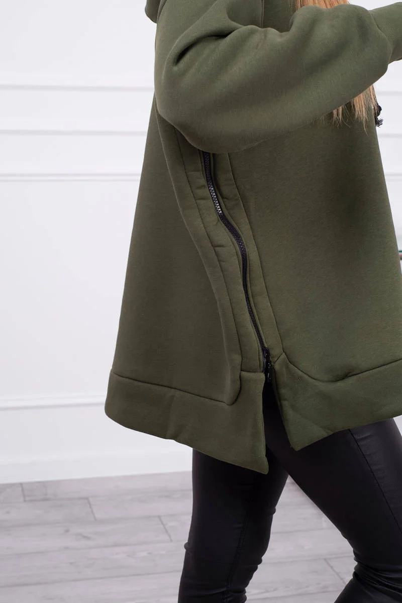 Popis Dámská zateplená mikina s kapucí 9380 Khaki zelená - K-Fashion