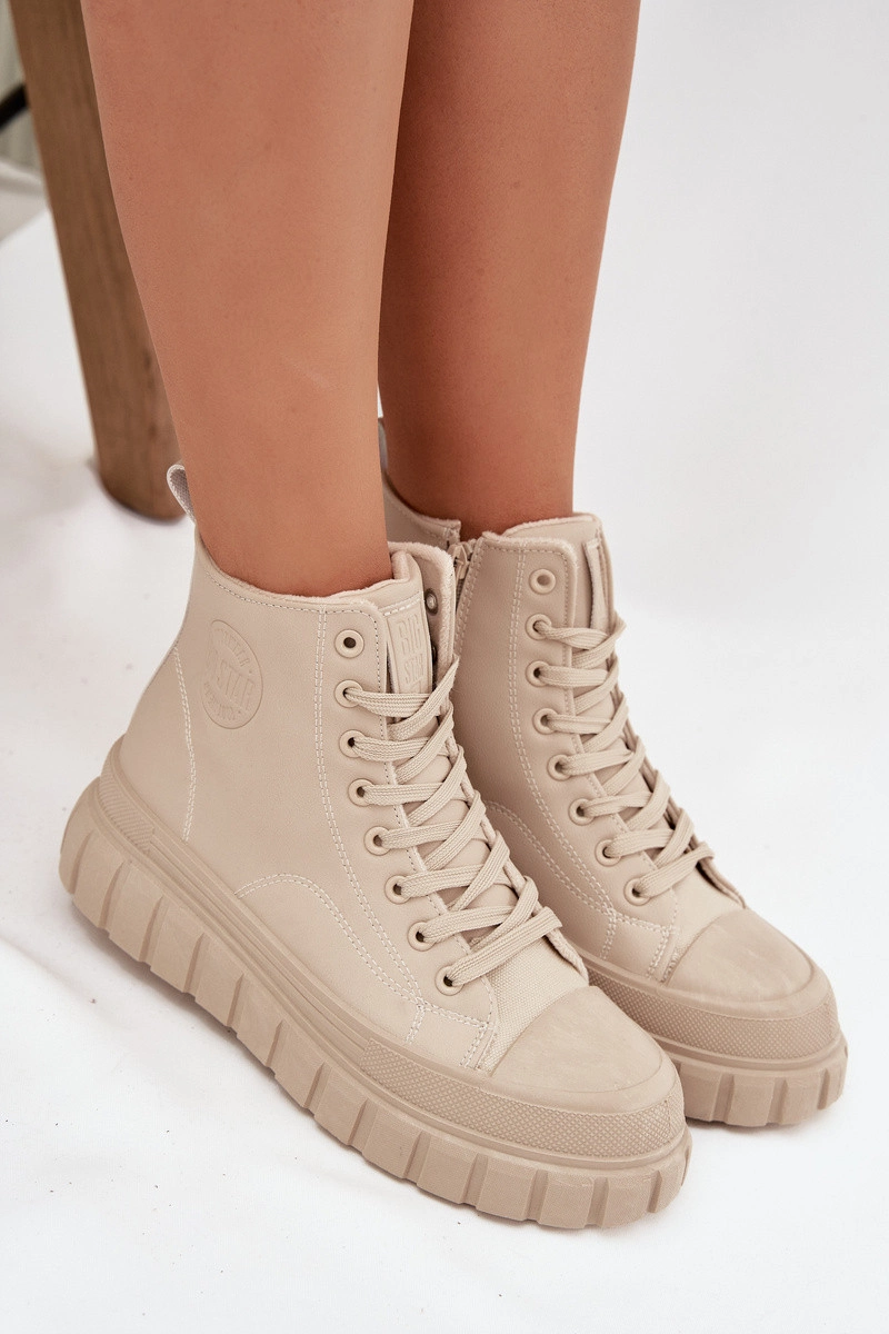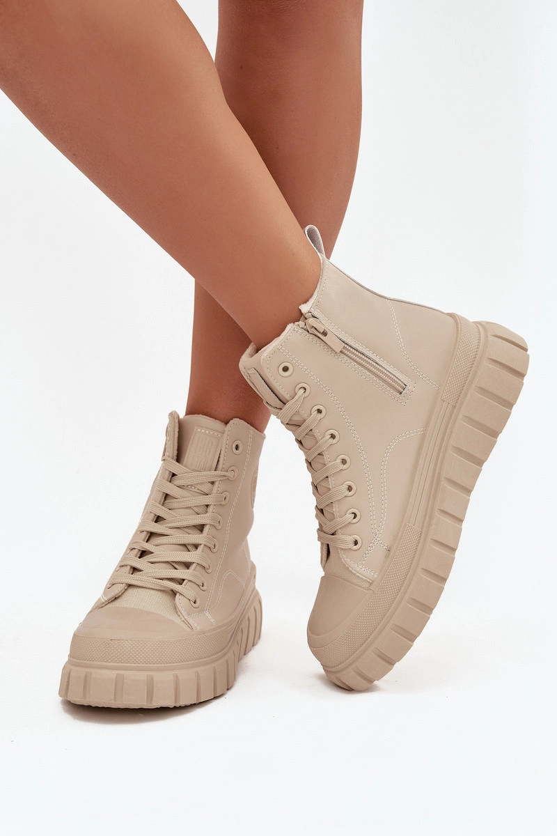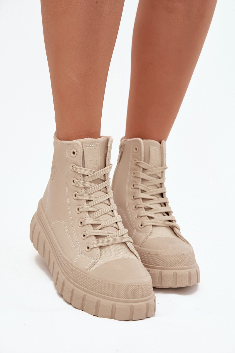 Dámské tenisky od značky Big Star kombinují módní městský styl s pohodlím pro každodenní nošení. Vyrobené z ekologické kůže, osazeny na stabilní platformě z gumového materiálu, poskytují komfort a jistý krok na jakémkoli povrchu. Model má šněrování a zip, což umožňuje snadné obouvání a perfektní přizpůsobení noze, a jemné vyhřívání uvnitř bot zajišťuje teplo v chladnějších dnech. Tenisky jsou skvělé do volnočasových outfitů, dodávají jim moderní charakter. Při výběru velikosti se řiďte tabulkou velikostí. Při výběru velikosti se řiďte tabulkou velikostí.