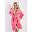 Dámský hunatý župan s kapucí je hřejivý a velmi příjemný na dotek. Je tvořen delším vlasem po obouch stranách, zavazuje se na pásek připevněný poutky.